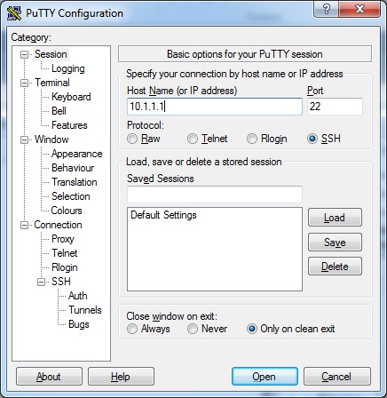 Here is an example of creating an SSH session using Putty, a free SSH client: