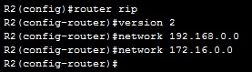 2. instructing the router to use RIPv2 by typing the version 2 command