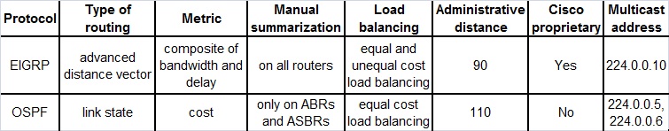 Differences between OSPF and EIGRP January 26, 2016January 19, 2019 upravnikThe following table lists the differences between OSPF and EIGRP: