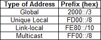 IPv6 address prefixes January 26, 2016January 19, 2019 upravnikHere is a summary of the most common address prefixes in IPv6: