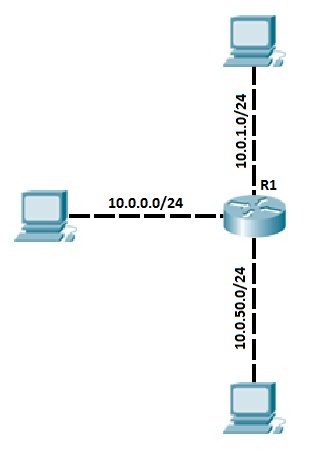 As you can see from the output above, the last octet doesen’t have to match, because the wildcard mask bits are all ones. The first 24 bits have to match, because of the wildcard mask bits of all zeros. So, in this case, wildcard mask will match all addresses that begins with 10.0.1.X. In our case, only one network will be matched, 10.0.1.0/24.
